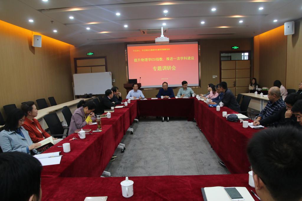按照学校“不忘初心、牢记使命”主题教育要求,10月16日,物理与电子科学学院于文渊楼D区301会议室分别围绕“提升ESI物理学指数,推进一流学科建设”、“开展校企合作,提高社会服务能力”、“本科生教育教学质量提升”以及“提升研究生培养质量和国际化建设”等专题,合并召开座谈会。院长蔡阳健,党委副书记杜伟,副院长赵曰峰、任俊峰、宋玉志牵头组织座谈,认真听取与会老师和学生意见建议。提升ESI物理学指数,推进一流...