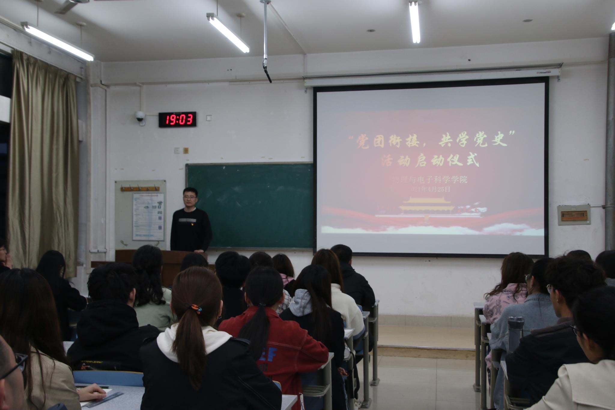 为加强学院思想建设,促进党团支部衔接,让同学们更加了解党史,4月25日,物理与电子科学学院于文渊楼C303教室举办“党团衔接,共学党史”活动启动仪式,20级辅导员史睿、研究生辅导员尹素月,2019级、2020级各团支部干部及百余名学生参加。活动由19级辅导员于双阳主持。于双阳就共青团员学习党史的重要性和必要性进行说明,提出广大团员青年应通过学习党史武装思想,厚植爱党、爱国、爱社会主义的情感,让红色基因、革命薪火代...