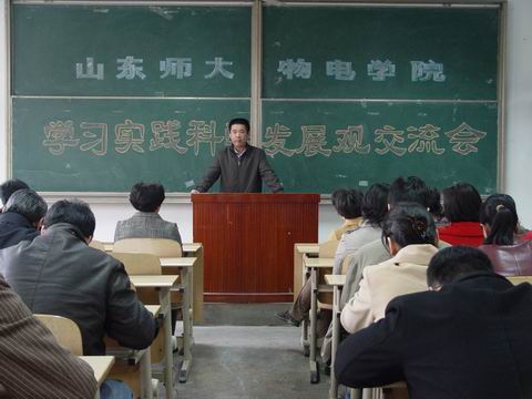 3月27日下午,学校党办与联系班级----物电学院07级电子信息工程1班,在长清校区综合教学楼B区334室召开座谈会,座谈会主题是“学习实践科学发展观,奋发有为,报效祖国”。