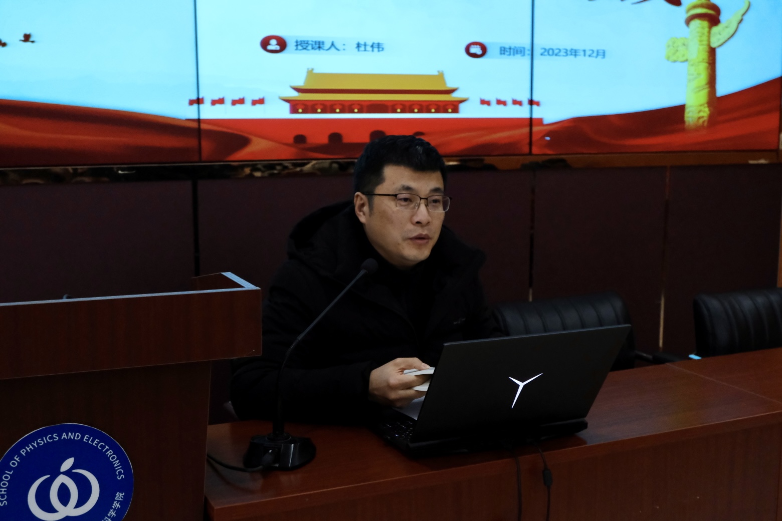 为提高反腐倡廉教育的针对性和实效性,切实加强各党支部党员纪律作风建设,12月27日下午,物电学院在文澜楼F347报告厅举办“加强廉洁自律,筑牢思想防线”廉政党课,学院党委副书记、纪委书记杜伟主讲,学院党委委员、各支部委员会委员、联系学生支部全体党员参加了党课学习。杜伟指出,以习近平同志为核心的党中央驰而不息正风肃纪,持之以恒推进全面从严治党。全体师生党员要筑牢信仰之基,补足精神之钙,坚定理想信念,切实增强“...