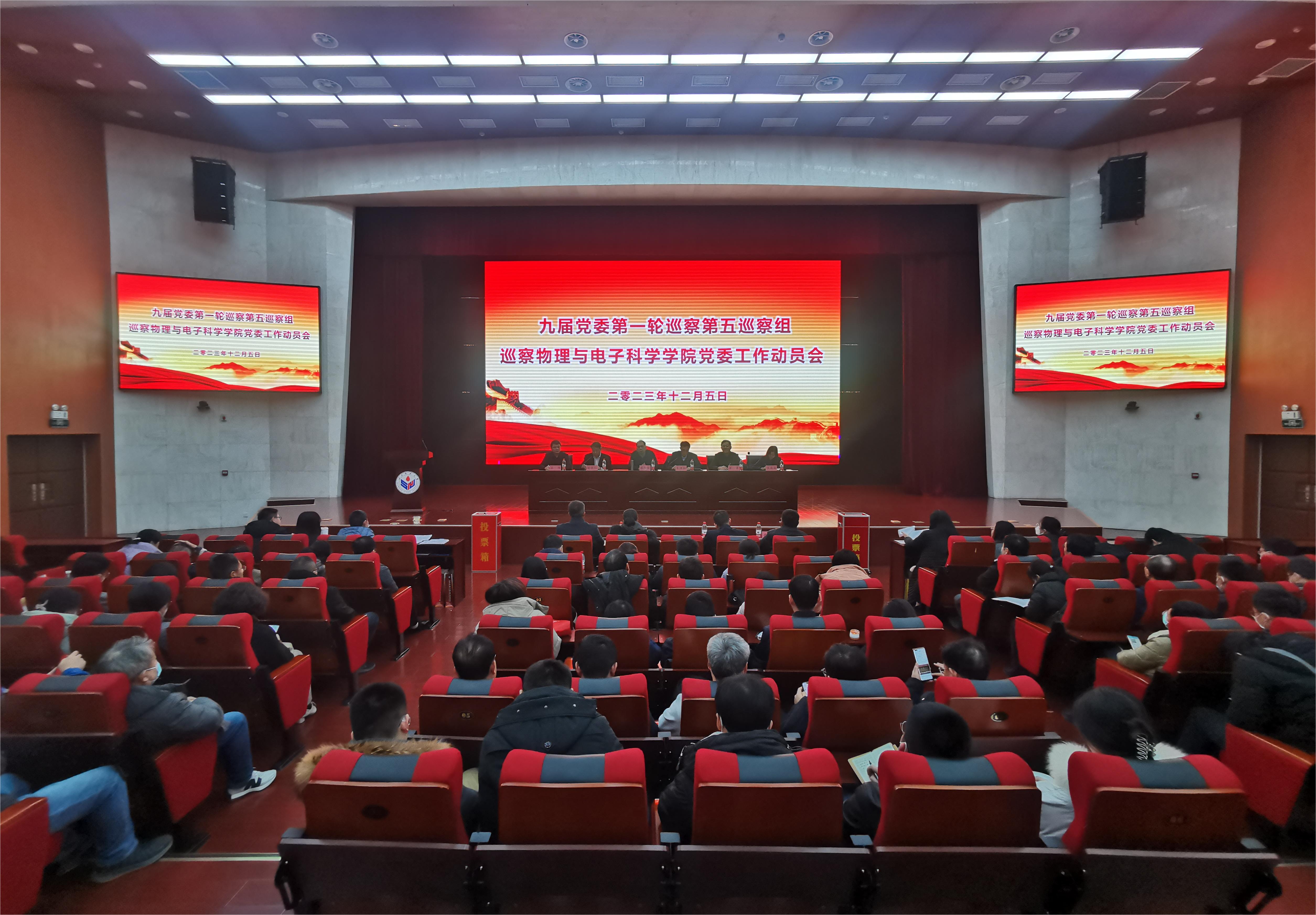 根据学校党委巡察工作统一部署,12月5日,学校党委第五巡察组巡察物理与电子科学学院党委进驻动员会在长清湖校区树蕙堂报告厅召开。第五巡察组全体成员、学院领导班子成员、全体教职工及学生代表参加会议。第五巡察组组长王洪松作进驻工作动员讲话,学院党委书记谢德仁主持会议并作表态发言。第五巡察组组长王洪松对本次巡察工作进行了安排部署,通报了巡察监督的重点任务、工作安排和工作要求。他指出,开展校内巡察是学校党委落实管党治党、...