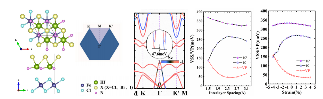 图1. HfNX/FeCl2铁谷异质结晶体结构和能谷极化性质。
