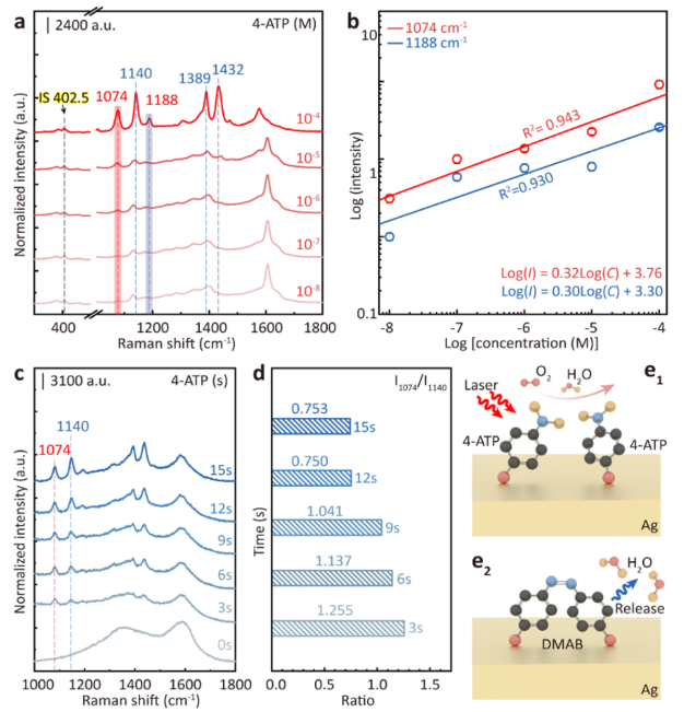 图2. 小分子污染物4-ATP催化过程的实时Raman监测