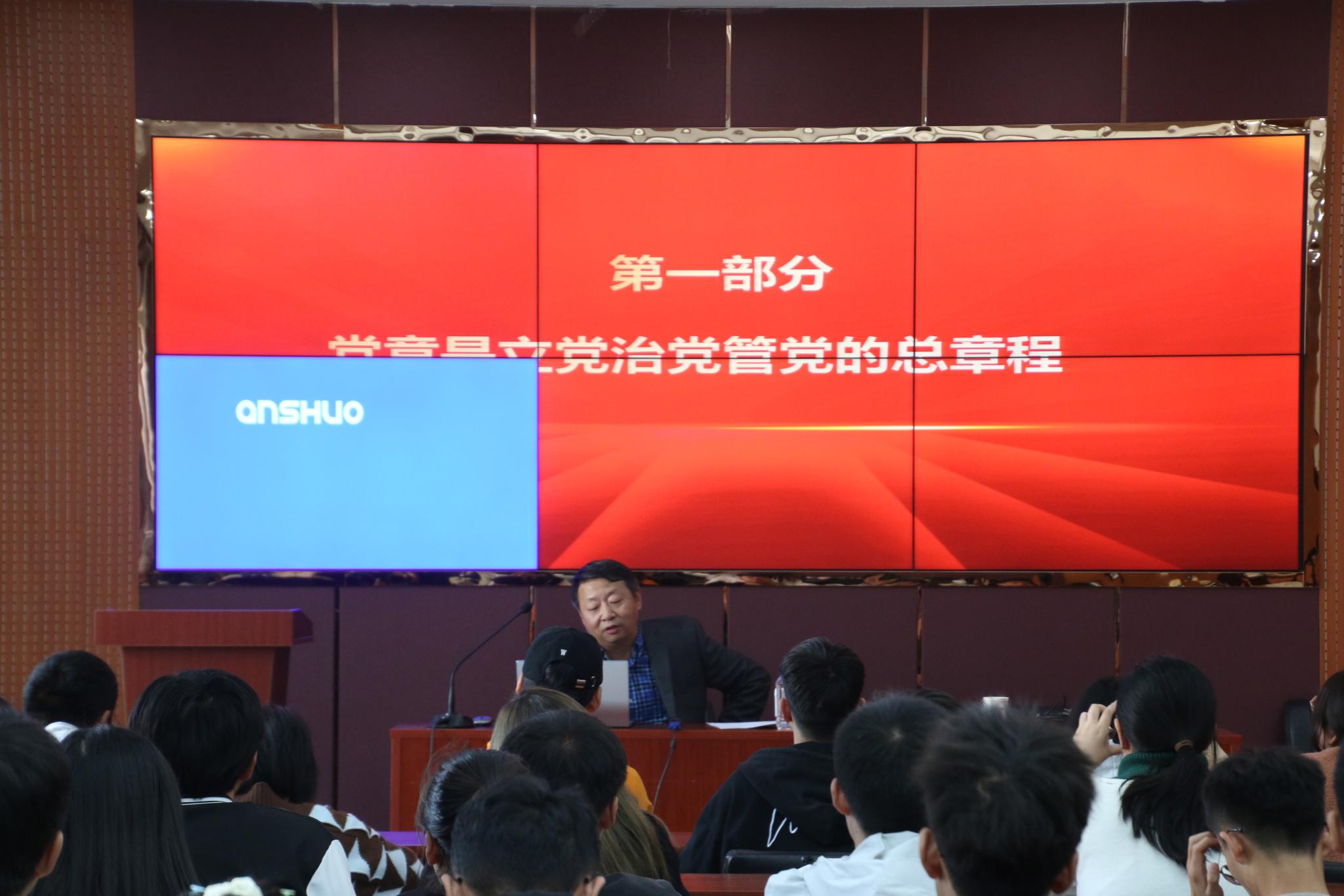 谢德仁以党的二十大胜利召开为切入点,围绕党章是立党治党管党的总章程、二十大党章修改内容、为什么要修改党章、党章历次修改内容、新时代青年学子的使命担当五个方面展开讲述。他谈到,党章集中体现党的理论和路线方针政策以及党的重要主张,根据时代的变化,党面临的形势、肩负的任务和党的自身状况也会不断发生变化,党的实践发展和理论创新不断有新的成果,党对自身建设、党员、党的干部、党的组织的管理不断有新的要求,与时俱进地修改党章就成为了客观必然。他说,新修订的党章体现了二十大报告中的一系列新观点、新论断、新思想、新战略、新要求,通过联系对照等,着重讲解了二十大党章修改的内容,引导入党积极分子们加深对党章内容的学习理解。要求大家要联系党的历史和今天党所处的历史方位、承担的历史使命的实际,学习党章,遵守党章,做践行党章的模范。结合习近平总书记对青年人的寄语,激励大家要行得端、做的正,坚持中国人民的志气和骨气,无论是在学习还是生活中都要不怕困难,不断磨练自己的意志,增强斗争本领,做社会主义的建设者和接班人。尹素月总结道,党章的修订与学习是建设新的伟大工程的需要,也是马克思主义中国化现代化的最新成果,学生要切实担当起新时代青年学子的责任和使命,为祖国建设和发展做出自己的贡献。