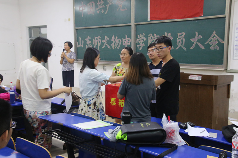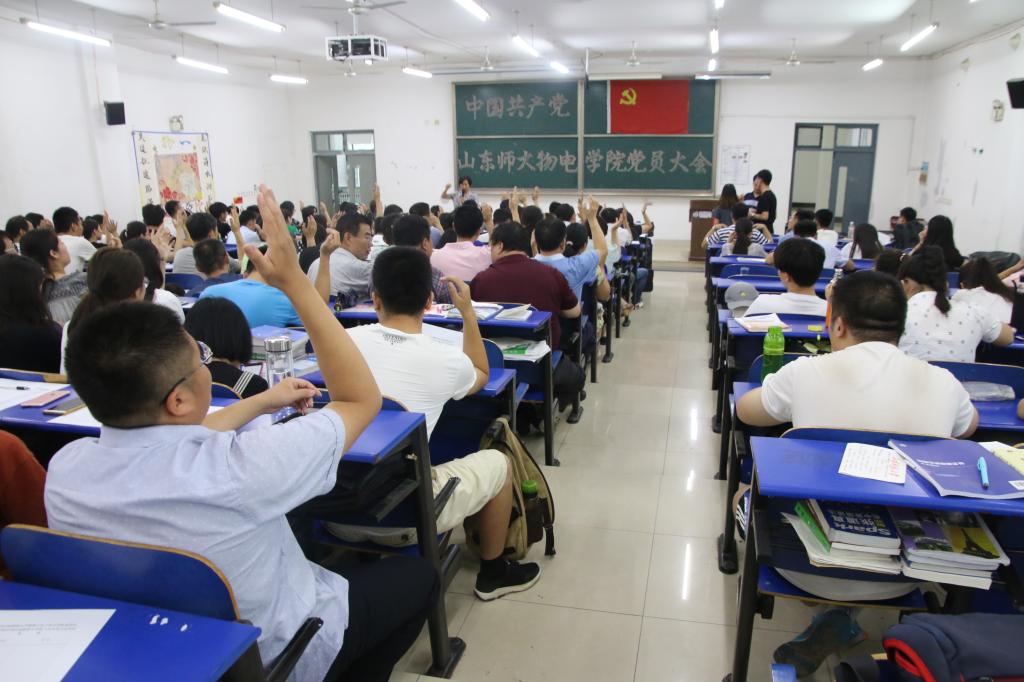 为选举出出席山东师范大学第八次党员大会代表,6月22日,物理与电子科学学院于长清湖校区综合教学楼B区242教室举行山东师范大学物电党员大会,物理与电子科学学院教工党员、研究生党员、本科生党员及预备党员到场参加。会议由物理与电子科学学院党委书记胡桂香主持。
