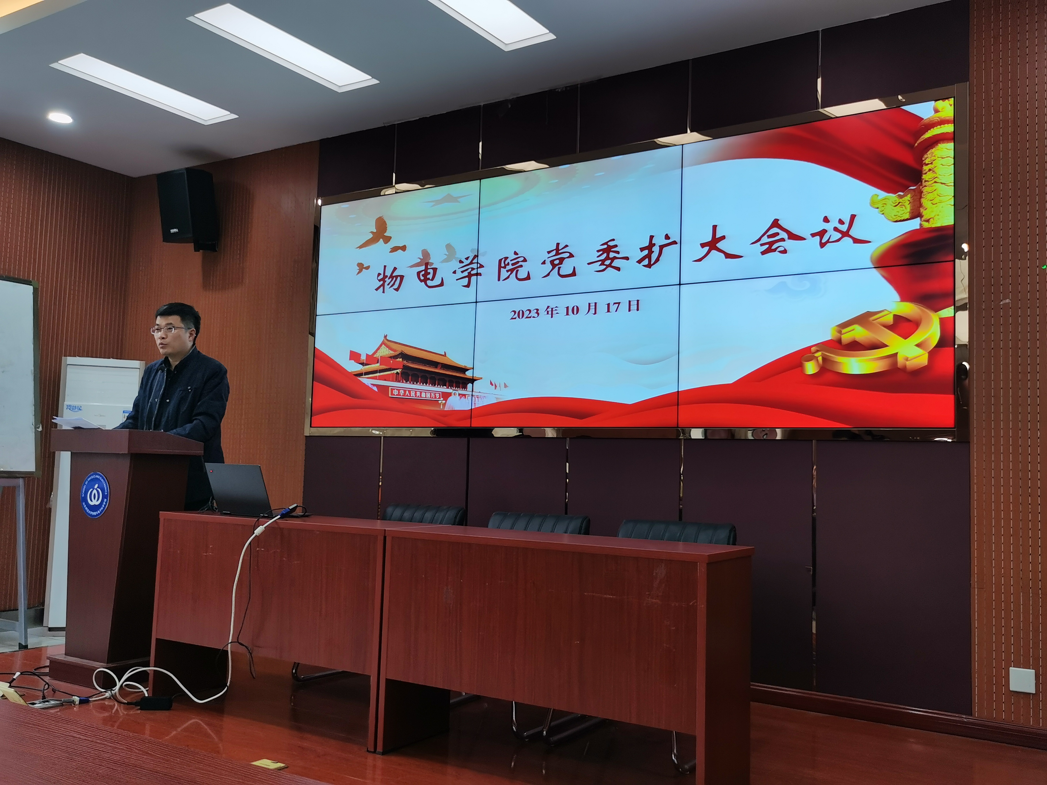 10月17日下午,物电学院在长清湖校区文澜楼F347报告厅召开党委扩大会议,学习传达学校第九次党员代表大会精神,推进落实学院近期工作。会议由党委书记谢德仁主持,学院领导班子、高层次人才、教研室主任、支部委员及党外人士出席并参加会议。