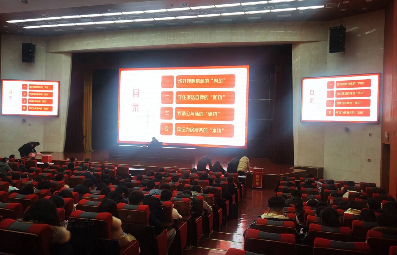 为进一步加强学院党风廉政建设,强化党员队伍廉洁自律意识,学院于12月19日在树蕙堂报告厅举办“坚守底线,不越红线”专题党课。本次党课由学院党委书记谢德仁主讲,以“践行‘三个务必’,做忠诚干净担当的新时代党员干部”为要旨,学院全体党员参加。