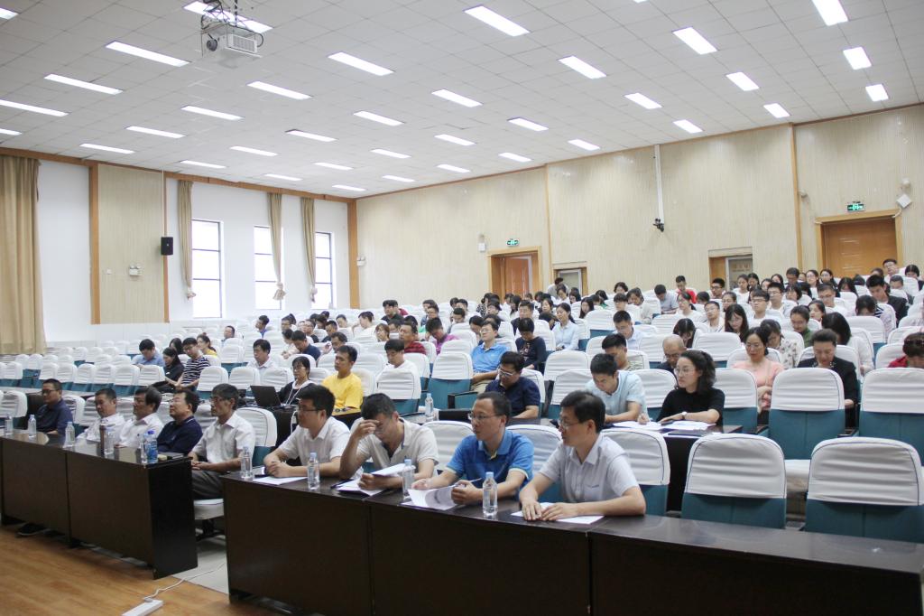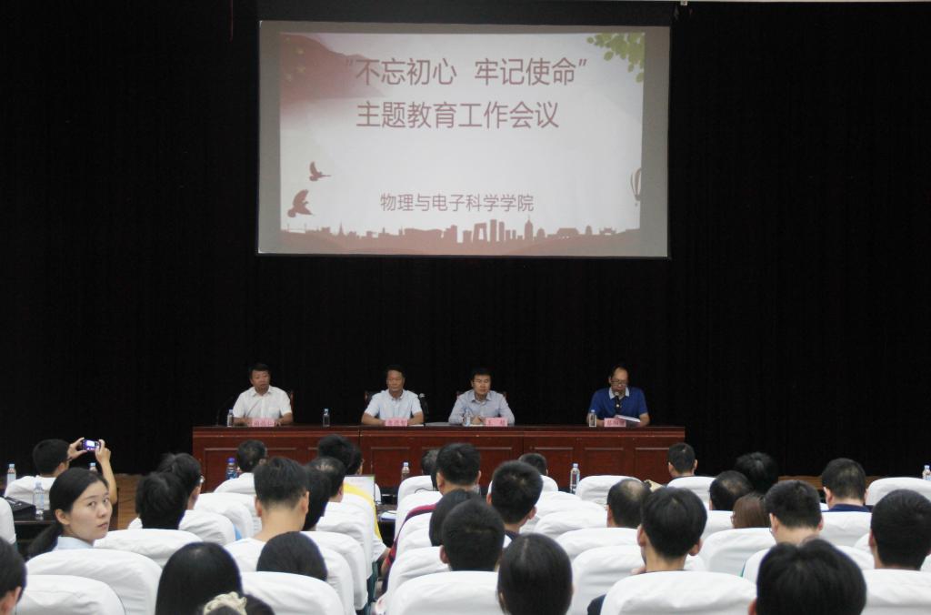 9月18日下午,物理与电子科学学院在长清湖校区第二报告厅召开“不忘初心、牢记使命”主题教育工作会议,安排部署主题教育工作。学校主题教育第五督导组康德智、王超到会指导,学院党委书记谢德仁作主题教育部署讲话,物理与电子科学学院全体党员参加会议。会议由党委副书记、院长蔡阳健同志主持。