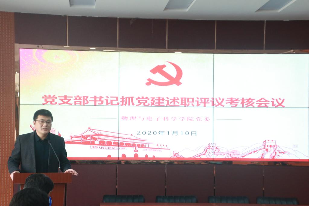 1月10日下午,物电学院在长清湖校区文澜楼F347报告厅召开党支部书记抓党建述职评议会议。物电学院党委委员、各党支部书记、组织委员和宣传委员共40多人参加会议。学院党委书记谢德仁作点评讲话,党委副书记杜伟主持了会议。