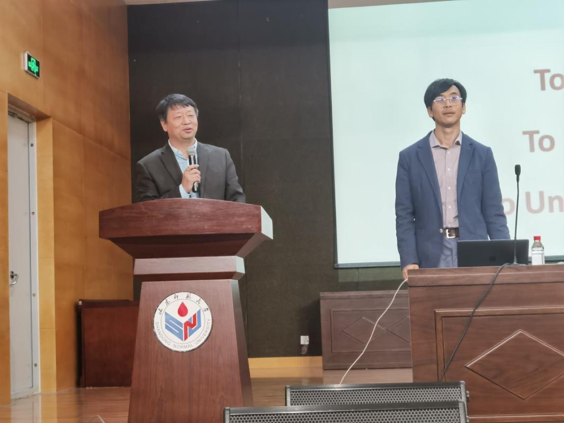 4月14日上午10点,物理与电子科学学院于图书馆报告厅举办"给世界的的答案--物理学课程思政建设初探"报告会。本次报告会邀请中国人民大学物理系张威教授担任主讲,实验室与设备管理处处长刘庆刚应邀出席,学院物理系教师、物理专业全体毕业生及其他单位师生参加本次报告会。报告会由学院党委书记谢德仁主持。