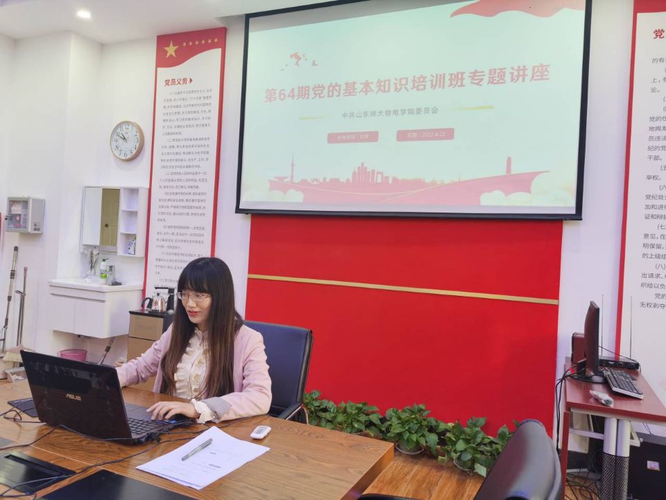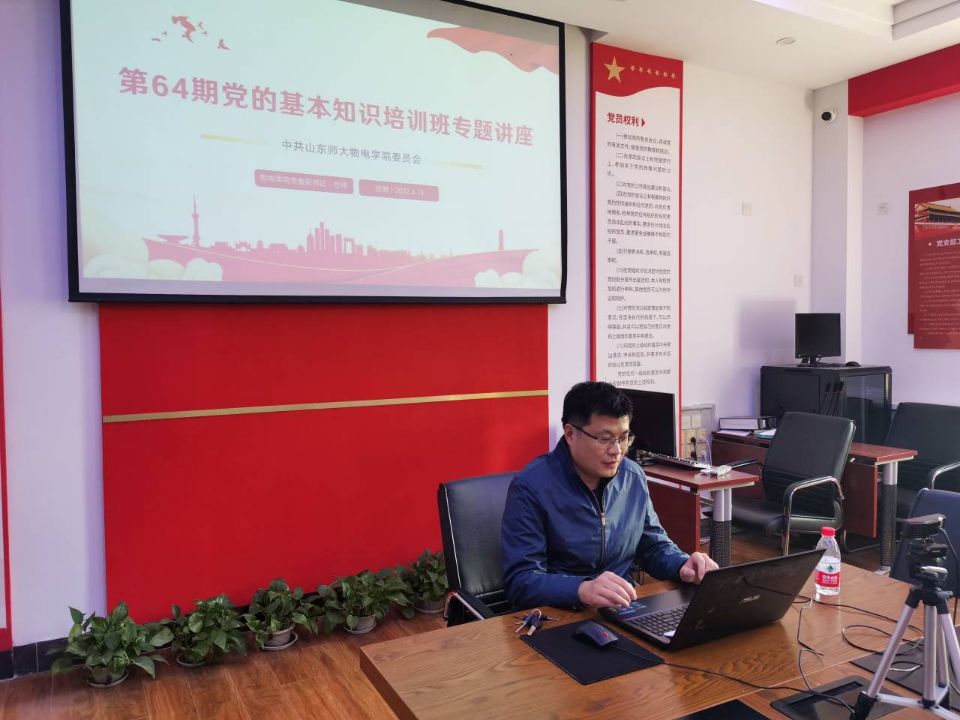 为加强入党积极分子教育,提升思想政治素养,物理与电子科学学院开展第64期党基班系列培训活动,于4月15日、19日、22日举办三场主题线上讲座,学院党委书记谢德仁、党委副书记杜伟以及20级辅导员刘亭分别担任活动主讲人,带领学院第64期党基班百余名积极分子从党史中汲取智慧、发奋图强。
