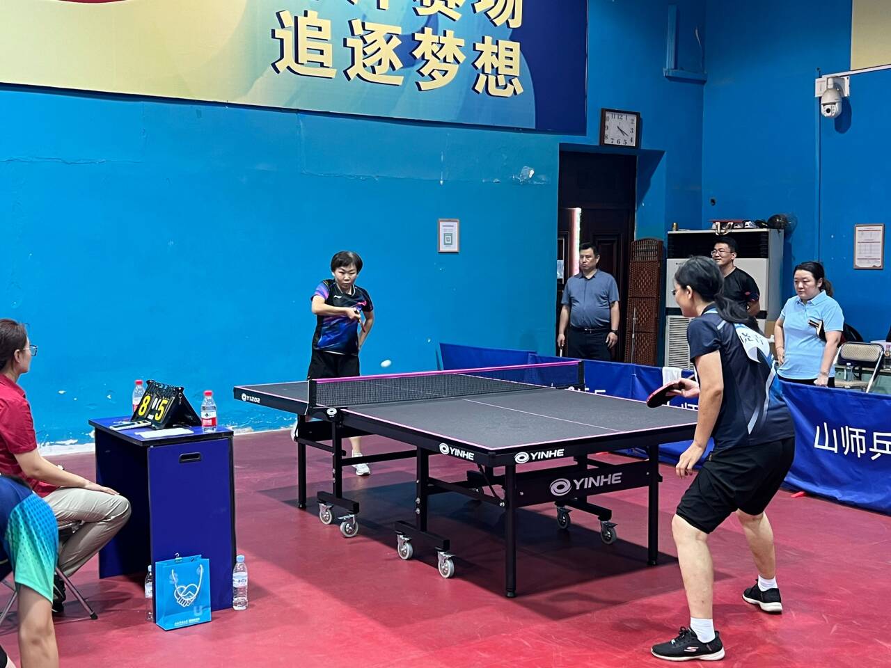 为迎接第40个教师节,9月7日,由学校工会(妇委会)主办、体育学院承办的山东师范大学2024年“奋力‘乒’搏新时代 勇‘乓’高峰创一流”教职工乒乓球比赛在千佛山校区成功举行。校党委副书记出席闭幕式并为获奖单位颁奖。