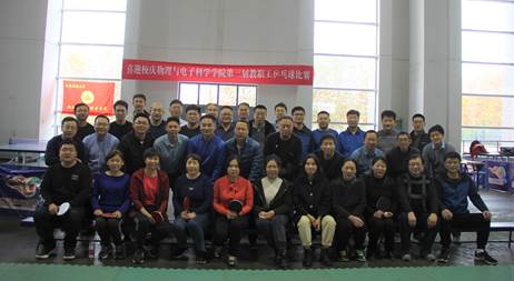 在物理与电子科学学院工会和乒乓球协会的认真筹备和精心安排下,11月5日中午到13日,物理与电子科学学院举办了喜迎校庆第三届教职工乒乓球比赛。学院党委书记谢德仁,院长蔡阳健,副院长赵曰峰、宋玉志、任俊峰,党委副书记杜伟,工会主席修显武,团委书记周勇均出席了本次比赛。活动由9个队伍共51名教职工参加,经过循环赛和淘汰赛,理论一队荣获冠军,第二三四名分别是普物二队、行政队和微电子队。