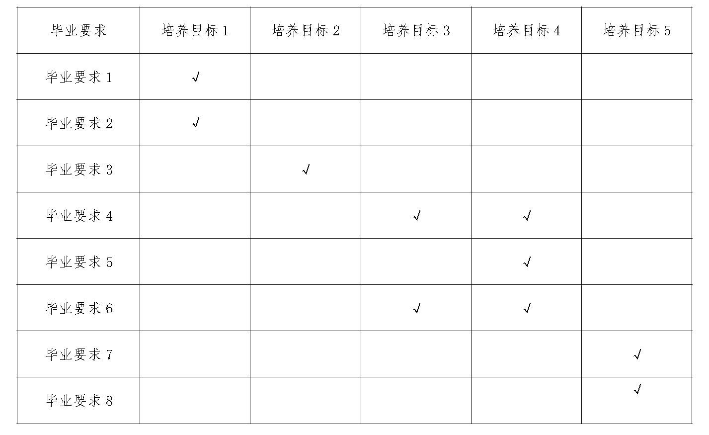 毕业要求与培养目标对应关系矩阵