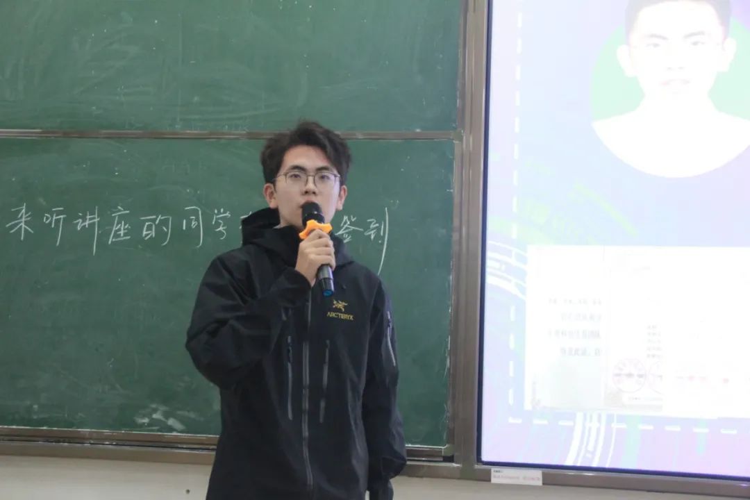 聂欣宇针对竞赛概念,向大家介绍了科创项目的类别和优势,“中国国际大学生创新大赛”、“挑战杯”等比赛不仅是高校科技成果向现实生产力转化的有效方式,也是培养高素质创新人才,培育新质生产力发展新动能的重要途径。张逸飞强调了科创比赛在提升自己和助力保研等方面的重要性,在发展个人的同时也扩大了社交范围。基于此,他还向大家传授了入门科创项目的经验,要主动寻找他人的帮助,打消自己在专业知识方面的顾虑。杜雪娜聚焦团队协作,阐述了团队分工、沟通交流、工作效率在科创项目中的重要占比,她展示了学院在科创项目方面的获奖情况,表达了对学院对科创项目支持的感谢。