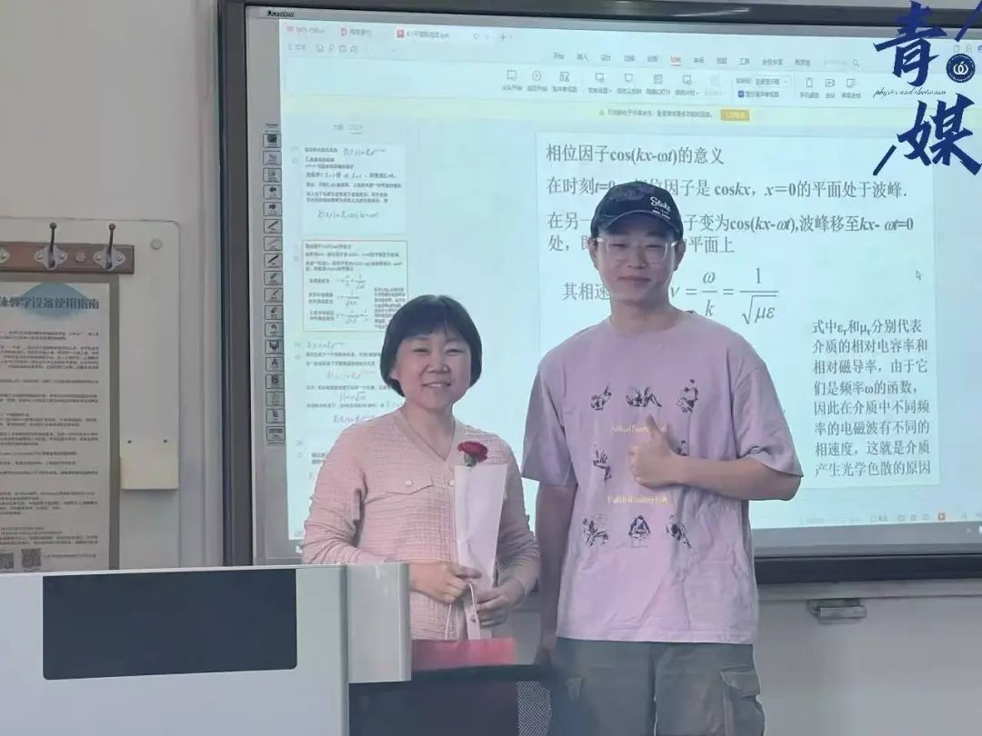 志愿者们身着马甲,为上课的女老师送上酸奶、香蕉与鲜花,传递着对老师们的浓浓敬意与关怀。