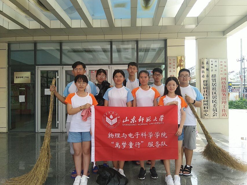为改善社区的环境卫生,培养同学们无私奉献、积极参与劳动的精神,7月15日,物理与电子科学学院“禹梦童行”服务队于山东省德州市禹城市群贤居社区组织队员们开展社区卫生义务大扫除工作,分别对社区公告栏、运动器材及周边菜市场进行卫生清理。