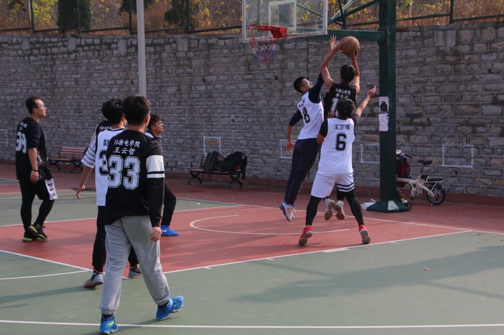 赛前,各队队员们积极热身、斗志昂扬。首观B组战场,比赛开始白队队员就展现出强烈的取胜欲望,他们凭借首发球权、默契的配合对黑队发起猛攻,迅速领先四分。而黑队也不甘示弱,重新组织,切换战术,成功缩小比分差距。白队几番转换快攻上篮得分,而黑队也不断利用巧妙配合打进得分。几轮快速推进消耗黑队体能导致两次阵地传球失误,而白队则抓住机会接连进攻得分,比分逐渐拉大。下半场,白队持续发力,白队主力33号电子二班赵昱程突破层层防守,三步上篮成功得分,6号电科班王正璠打成二加一,再得三分。队员们漂亮的长传球、快速的组织、精准的投篮赢得观众的阵阵欢呼。黑队顶住压力,稳扎稳打,努力缩小比分。然而,比赛终有输赢,最终白队以57:37获得胜利。反观A组赛场,一开场黄队便率先抢得球权,但白队严防死守,采取包夹战术,并试图多次抢断。双方拼抢激烈,掀起一场没有硝烟的战争。黄队28号研究生王聪冒掉对方防守队员进攻上篮打板得分,投进本场比赛第一个球。随后,黄队又抓住罚球机会两投两中,暂时领先白队。但白队也不甘示弱,积极调整策略,猛追比分。白队3号2017级电科班郐英祝两次完成抢球后,凭借自己速度优势快速甩开对手,完成完美投篮,引得观众喝彩连连。双方每位队员都用心跑位,为队友掩护,展现良好协作精神。两队实力旗鼓相当,不分伯仲。最终,在激烈竞争之下,白队以38:36队险胜黄队。