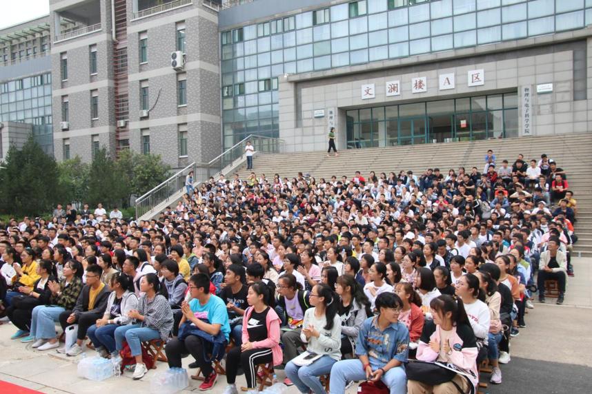 2019年9月17日下午,物理与电子科学学院于长清湖校区文澜楼A区广场举办新生见面会。物理与电子科学学院党委书记谢德仁,院长蔡阳健,教师代表国承山,副院长赵曰峰,副院长宋玉志,工会主席修显武,物理系主任胡贵超,电子系主任王晶晶,团委书记周勇及学院新生辅导员方芳、于双阳、吴钰玮出席会议。2019级473名本科新生、74名3+2贯通培养新生以及151名研究生新生参加见面会。会议由学院党委副书记杜伟主持。