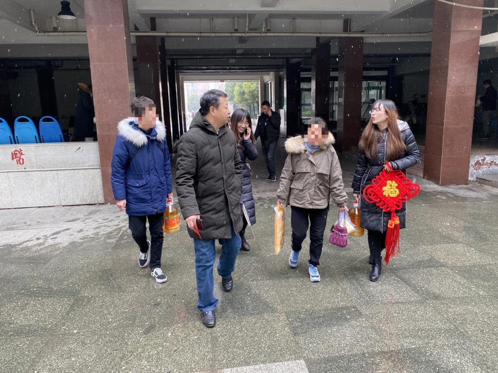 1月16日,党委书记谢德仁带领副书记杜伟,副院长赵曰峰、宋玉志,教工二支部党员代表,全体辅导员前往滕州、台儿庄进行家访。16号当天大雪纷飞,但是严寒和大雪并没有阻挡住温暖和爱心的传递。家访人员一行踩着冰雪,冒着严寒,按照原定计划前往四户贫困家庭。