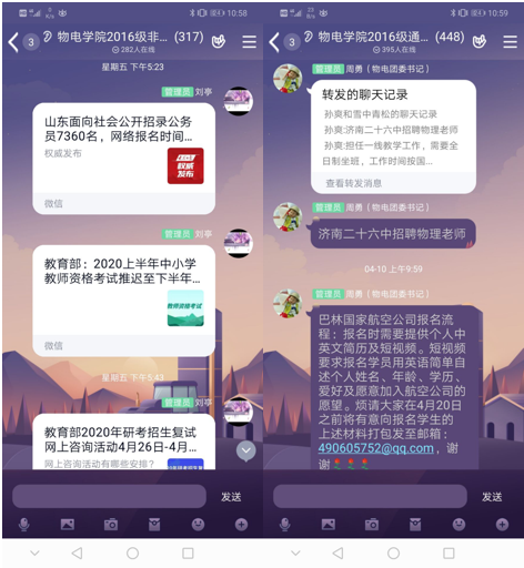 就业指导,助力学生发展。为应对特殊时期对大学生求职应聘带来的困难,毕业班辅导员及时通知毕业生相关就业政策,第一时间推送网上“云招聘”和毕业派遣等相关信息,邀请合作企业HR进行模拟面试。以学生为本,协助开取协议证明,寄送三方协议,保证毕业事宜顺利进行。开展研究生职业生涯与就业规划“云”直播系列活动,邀请优秀毕业生、教学名师和教育专家进行教师招考与面试方面的指导和经验分享,帮助研究生同学在疫情期间做好就业规划。辅导员还积极参与学院实习指导小组工作,开展教育、支教实习线上指导,指导学生录制教学视频并发给指导教师打分评议,以此提高师范生专业素质和技能,为以后就业打下坚实基础。