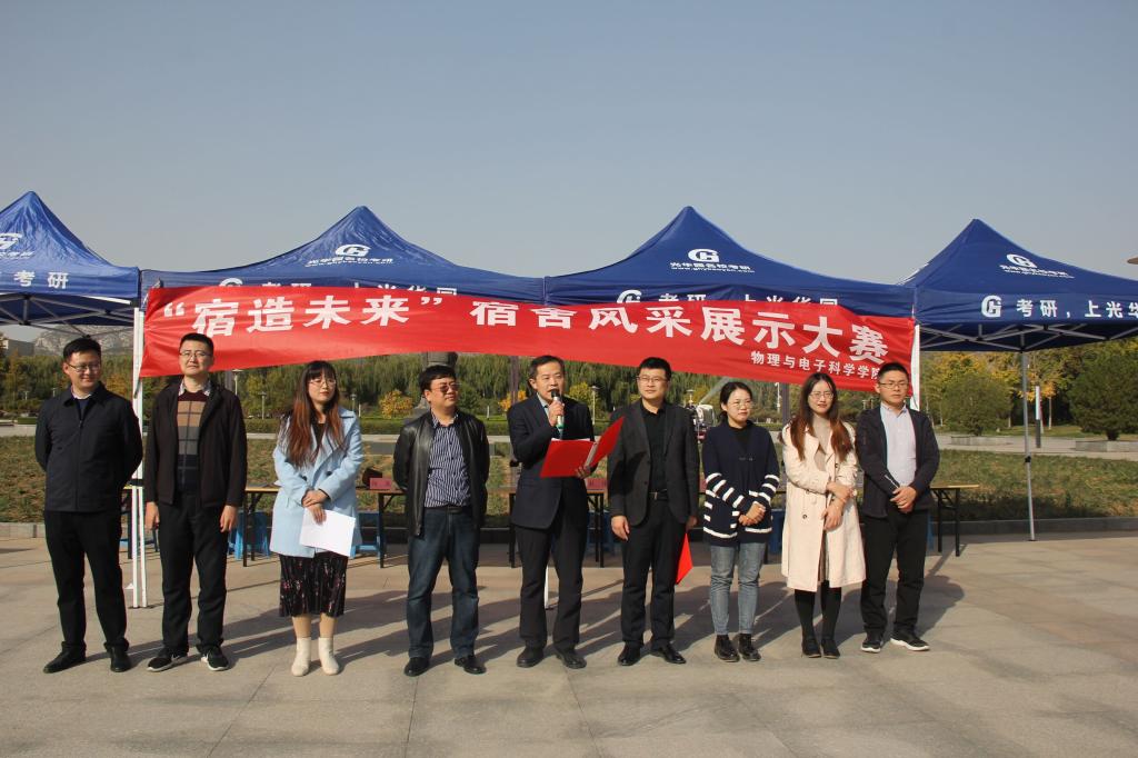 10月22日下午,物理与电子科学学院于天颐广场举办“宿造未来”宿舍风采展示大赛。学生处副处长韩维群,学院党委副书记杜伟,团委书记周勇,全体辅导员出席本次比赛,18、19、20级450名同学参赛,活动由2018级辅导员杨岚主持。