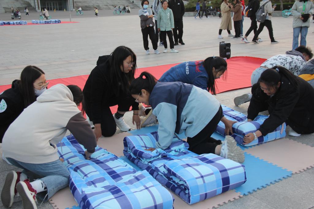 下午两点,比赛在天颐广场正式开始。本次比赛分为以宿舍为单位的团体赛和单人参加的个人赛,每场比赛限时7分钟。韩维群对同学们积极踊跃参赛表示肯定,他指出本次比赛以“宿造未来”为主题,以培养学生的自觉性,自律性为目标,促进了宿舍文化、校园文化的发展,营造了积极向上的宿舍文化氛围。杜伟宣读比赛规则,他提到本次比赛秉持着公平、公正、公开的原则,由学院老师以及学生处卫生负责人根据参赛者所叠被子的平整情况,棱角程度等综合评价标准打分。随着一声令下,参赛同学便马上精神抖擞的进入比赛状态,捏住被角,掀折被身,抚平褶皱,压捏长条,上拉长条,两边对折,一块棱角分明,方方正正的“豆腐块”便展现在眼前,让观赛同学眼前一亮,赞叹不已。现场气氛热烈,加油声,欢呼声此起彼伏,参赛同学们也全神贯注的投入比赛,动作老练迅速,肢体配合流畅利落,这无一不展现出同学们平日生活中积累的经验和良好的生活习惯。团体赛中,以宿舍为单位的小个体,六人互帮互助,互相交流讨论彼此间被子存在的不足,相互整理被子细节,弥补了个人的缺点,尽最大可能性的充分利用赛场上仅有的七分钟时间,将最好的三块“豆腐块”呈现到评委面前。比赛过程中,志愿者们用本次比赛中优质的“豆腐块”摆成了大大的“70SDNU”,参赛的同学们手拉手围成一圈,用欢呼表达了对山东师范大学70周年校庆的期待和祝福,展现出物电学子对母校深深的挚爱之情。经过紧张激烈的比拼,最终评出团体赛一等奖6个,二等奖12个,三等奖16个;个人赛一等奖8个,二等奖16个,三等奖18个。获奖同学在热烈的掌声中上台领奖。至此,本次活动完美落下帷幕。