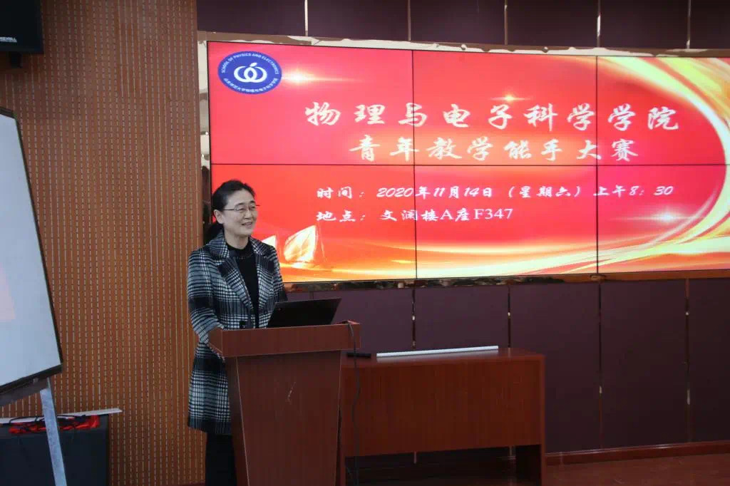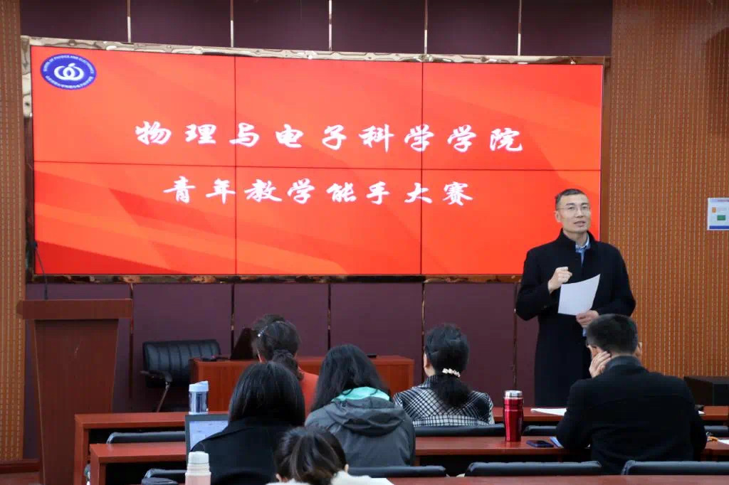 11月14日上午,物理与电子科学学院于长清湖校区文澜楼A区347报告厅举办青年教学能手大赛,党委副书记杜伟、副院长赵曰峰及30余位教师出席。学校教学督导组成员桂维玲教授、校级教学能手刘杰教授、杜军副教授、学院本科教学督导组成员以及各教研室主任担任本次比赛评委,共10位青年教师参加此次比赛,比赛由赵曰峰主持。