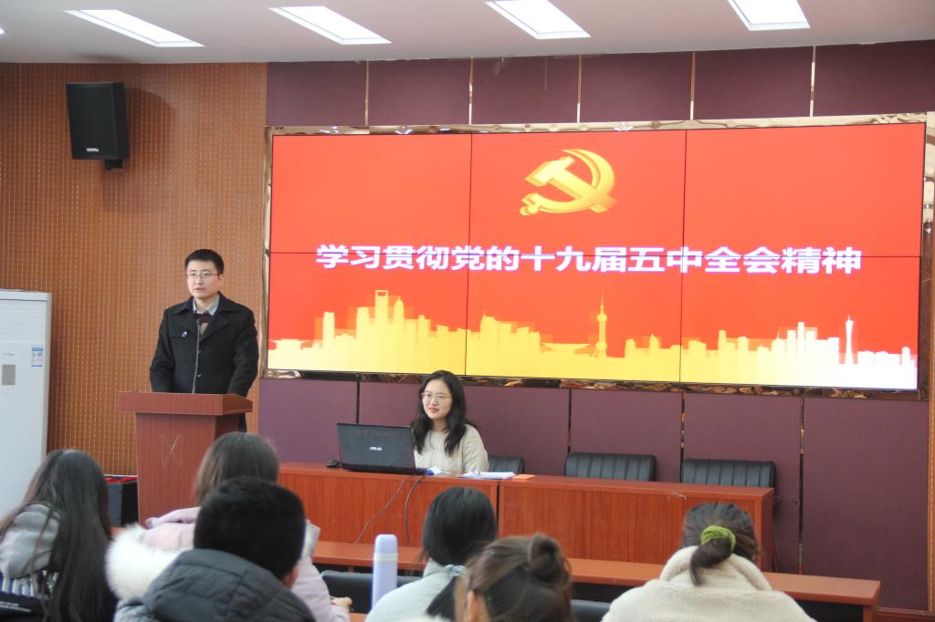 11月24日中午,物理与电子科学学院于文澜楼A区f347开展第二期团校培训活动。活动由19级辅导员于双阳主持,17级辅导员方芳主讲“学习贯彻党的十九届五中全会精神”专题讲座,60名学院第二期团校学员参加。