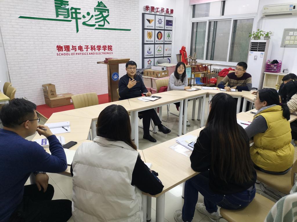 为贯彻2021届全国普通高校毕业生就业创业工作网络视频会议精神,落实相关工作部署要求,物理与电子科学学院于12月1日下午召开2021届毕业生就业工作研讨会,安排2021届毕业生就业事宜。会议由党委副书记杜伟主持,学院全体辅导员参加。