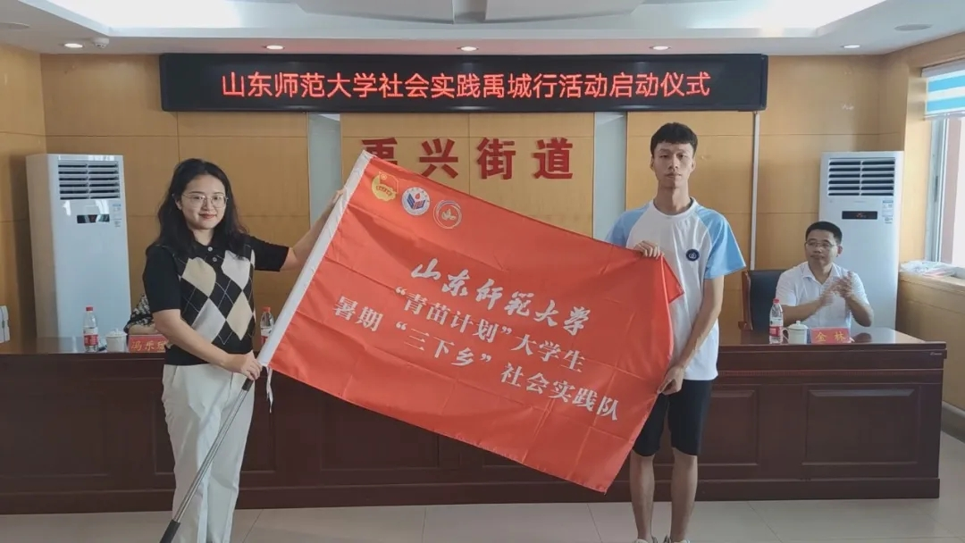 金林首先致辞,对山东师范大学社会实践队伍的到来表示热烈欢迎。他表示,山东师范大学给禹城输送了源源不断的人才,促进了当地经济的发展,山师社会实践队伍每年暑期都会到当地开展社会实践,为当地各项工作注入了新鲜的血液。今年正逢中国共产党成立一百周年,社会实践要展现新时代风采,续写新时代华章。之后,杜伟代表山东师范大学物电学院、国教学院向禹城捐献“希望小屋”一处,辅导员老师向社会实践队伍授旗。刘极作为社会实践服务队员代表发言,表示要在实践过程中互帮互助,培养团队合作精神,在实践中实现自己的价值。仪式最后,杜伟作总结讲话。他强调,在中国共产党成立一百周年的特殊时刻,同学们要争做新时代优秀共青团员,扎根基层,融入百姓生活,到人民群众中去,奉献自己的青春力量。同学们纷纷表示,一定珍惜社会实践机会,脚踏实地的为人民做实事。