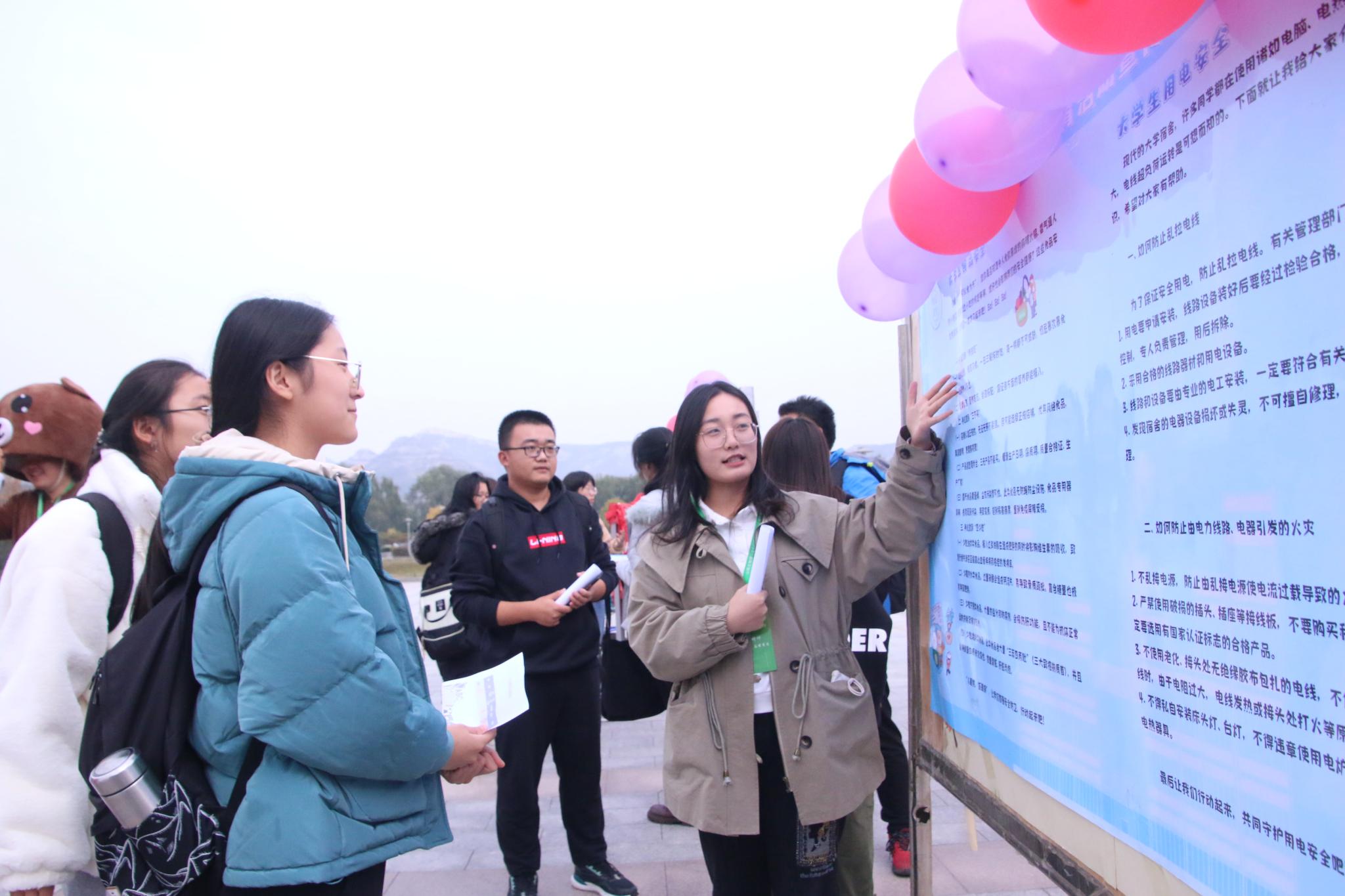 为普及安全教育知识,提高大学生安全防护意识,增强防范能力,10月28日,物电学院社团实践部于天颐广场举办以“普及安全知识,构建和谐学校”为主题的安全宣传教育活动,共百名学生到场参加活动。