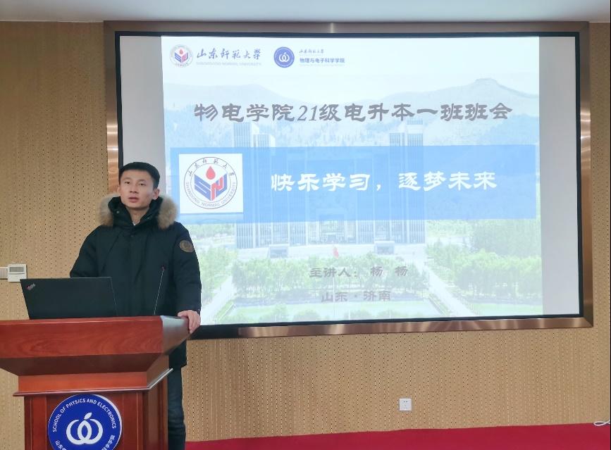 为构筑新时代背景下“大思政”高校思想政治教育格局,进一步加强和改进辅导员队伍建设,扎实推进学院学生工作开展。11月8日下午,物理与电子科学学院于文渊楼D区301会议室举办21级电升本一班“快乐学习,逐梦未来”主题班会。本次班会由新聘班主任杨杨老师主持,21电升本一班的38名同学参会。