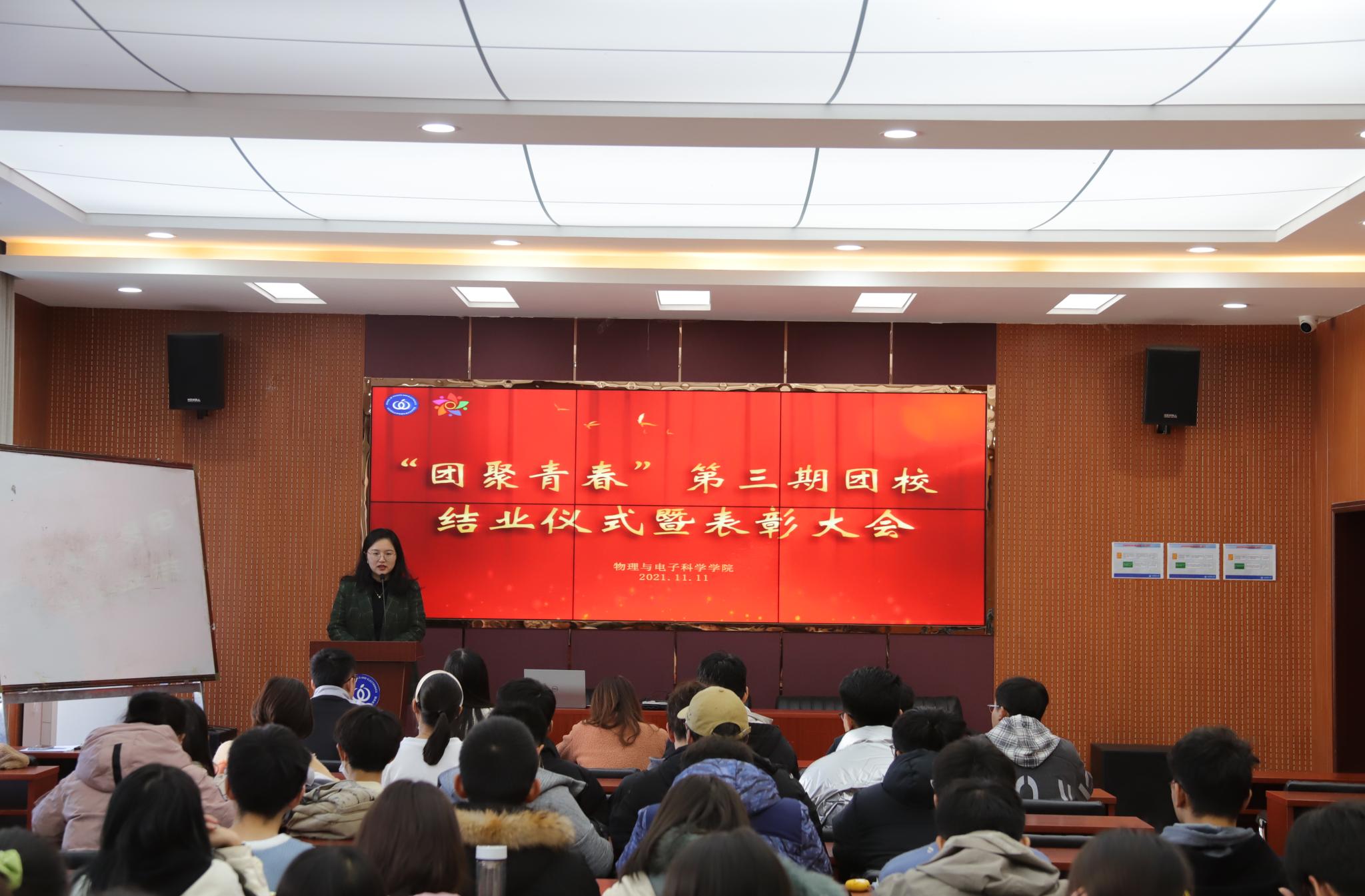 为坚定学生干部理想物理与电子科学学院于文澜楼A区F347会议室举办“团聚青春”第四期团校开班仪式暨第三期团校结业仪式。本次活动由辅导员方芳主持,全体辅导员、20名第三期优秀学员代表及50名第四期团校学员参加。