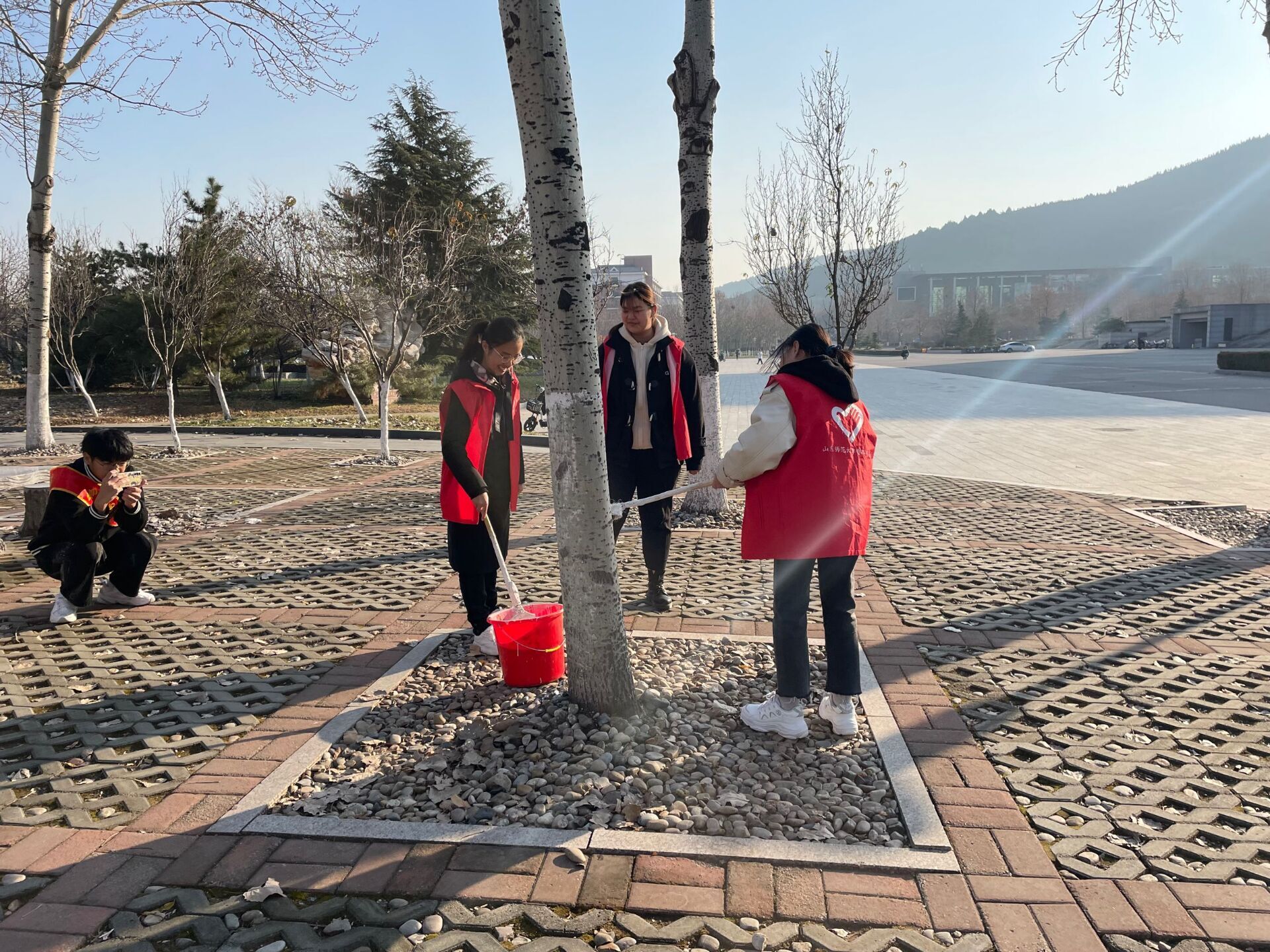 志愿者们在指定地点集合,领取桶、石灰、刷子等工具,并将提前准备的石灰泡好。参加校园树木刷石灰防虫活动的志愿者们热情高涨、奋勇争先,大家相互配合,认真做好每道工序,确保每一棵树木都穿上洁白、防虫、保暖的“衣服”。现场呈现出一片热火朝天的劳动景象,通过大家齐心协力,团结互助的共同努力,本次活动出色完成,树林成功换上了白色“铠甲”,本次志愿服务活动画上圆满句号。同学纷纷表示,在活动参与中,他们对树木生长了解得到进一步加深,其环保意识、生态意识得到增强。参与到本次“为树穿衣”活动的志愿者何嘉嘉表达自己美好祝愿,希望“为树穿衣”活动可以帮助树木顺利过冬、不受病虫害侵袭,也希望物电人在人生道路上可以不畏寒冬,迎接春风。