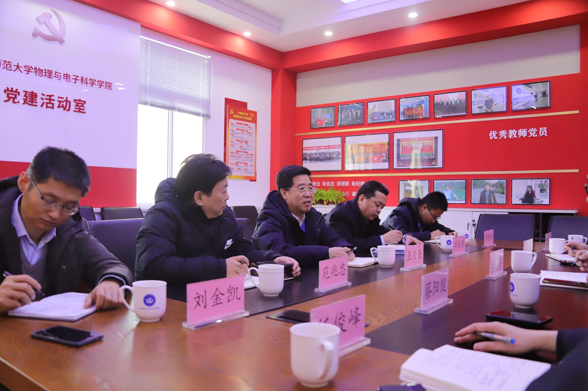 2月21日上午,副校长王传奎到我院检查开学工作,并召开座谈会。实验室与设备管理处长刘庆刚、人才工作办公室主任李登旺、信息化工作办公室主任苑兆忠、党委办公室副主任刘金凯陪同调研。物电学院领导班子参加了座谈会。