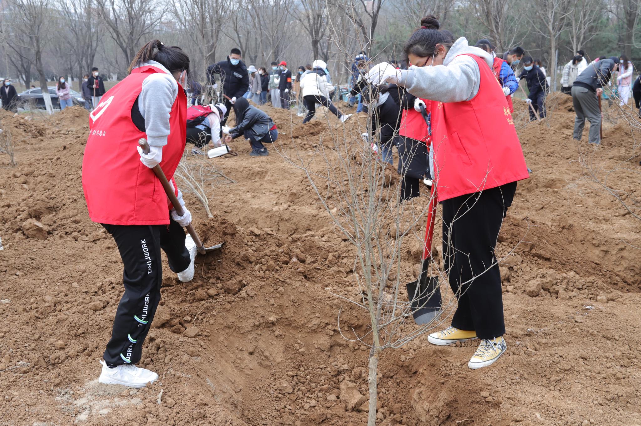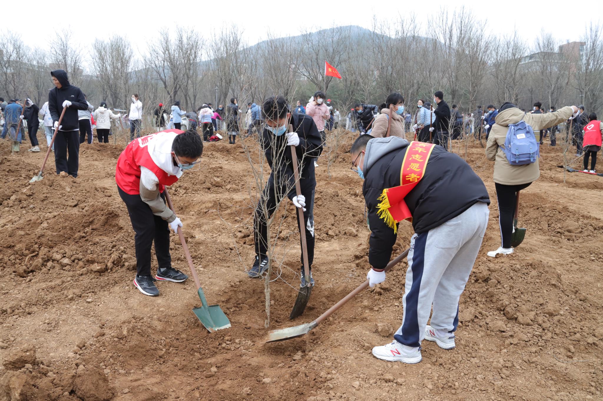青年志愿者协会成员带着准备好的铁铲、锄头、枝剪、肥料、水管等工具提前到达山师第二餐厅东新开发土地集合现场并联系好园林局的工作人员,为活动稳步开展做足准备。李在国率先垂范,在对植树流程进行了简单介绍,对任务分配进行精准部署后,紧紧围绕安全注意事项讲解,着力调动各小组成员植树、爱树的积极性。志愿者成员在林业技术人员的指导下,以四五人为小组,由各个组长带领成员前往所负责区域,井然有序展开植树活动,挥舞铁锹翻新土,扶植新苗列成行,齐心协力种下一棵棵小树苗;挖土回填,培土踏实,浇水灌溉,学子植树热情高涨、氛围浓厚,呈现出一派热火朝天的劳动场面。同学纷纷表示在此次活动中感受到了劳动的喜悦,同时也切身体会到了劳动者的辛苦,在看到自己的劳动成果时感到十分的欣慰,并希望自己可以像树苗一样茁壮成长。据统计,志愿者们当天共植树200余棵,为校园增添了一片新绿,助力校园环境逐步走上高质量绿色发展轨道。