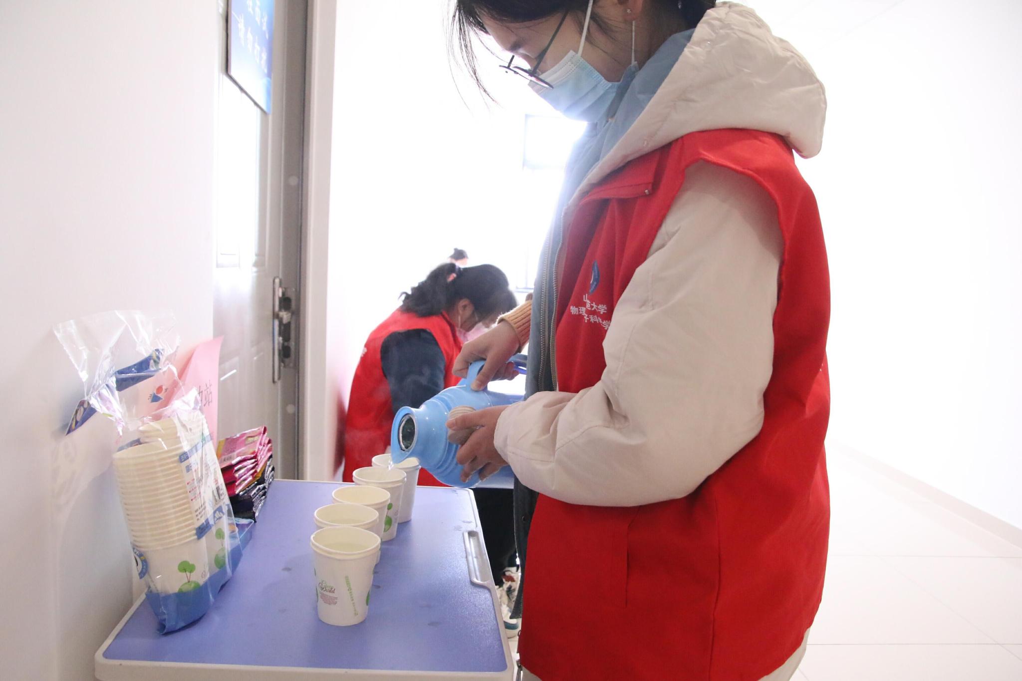 学院聚焦最大限度降低疫情对考研复试的影响,从学子切身利益出发,积极筹备、主动作为,充分调动内外资源并进行系统整合,为线上面试学生遴选了具有稳定网络环境的教室、实验室、会议室等场地10间,为其云端复试提供专门场地条件。除此之外,学院志愿者们共同承担起服务工作,提前打扫清理面试场地,在楼道内张贴温馨提示,提醒同学们不要大声喧哗,为参加复试学子营造一个安静舒心的场地氛围;为帮助面试学子搭建符合复试需求的网络环境,学院安排专人提供相关技术支持,面试期间相关技术人员全程陪伴,力求及时解决突发问题;与此同时,每间面试教室门口设立“研途加油站”,为其准备一次性纸杯、可冲泡饮品和若干椅子,全力优化便利服务,用贴心爱心暖人心。云端复试期间,志愿者们轮流进行值班、合理分工,拉紧同学互助的共同纽带,以贴心的服务为研途保驾护航,带着积极的工作态度活跃在岗位,悉心接待每一位考研学子,不遗余力做好后勤保障工作。