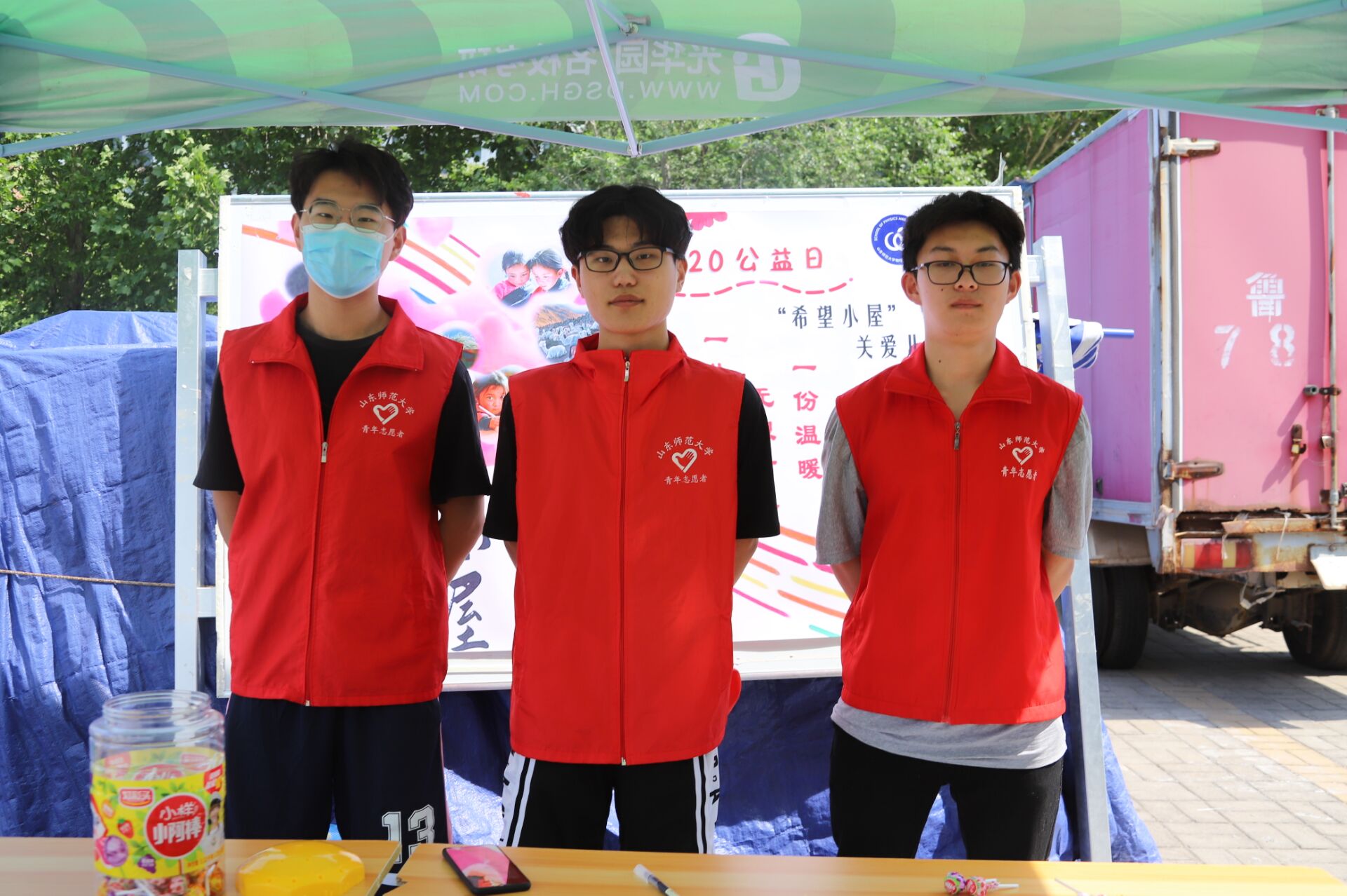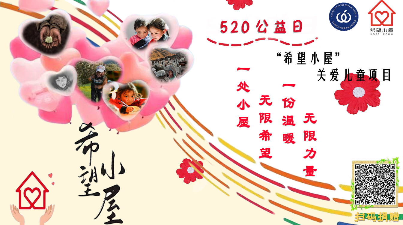 为呼吁学院学生积极参加“公益希望小屋活动”,增强其爱心与社会责任感,5月20日至24日期间,物理与电子科学学院青年志愿者协会于一餐超市边开展“公益希望小屋”线下宣传活动。