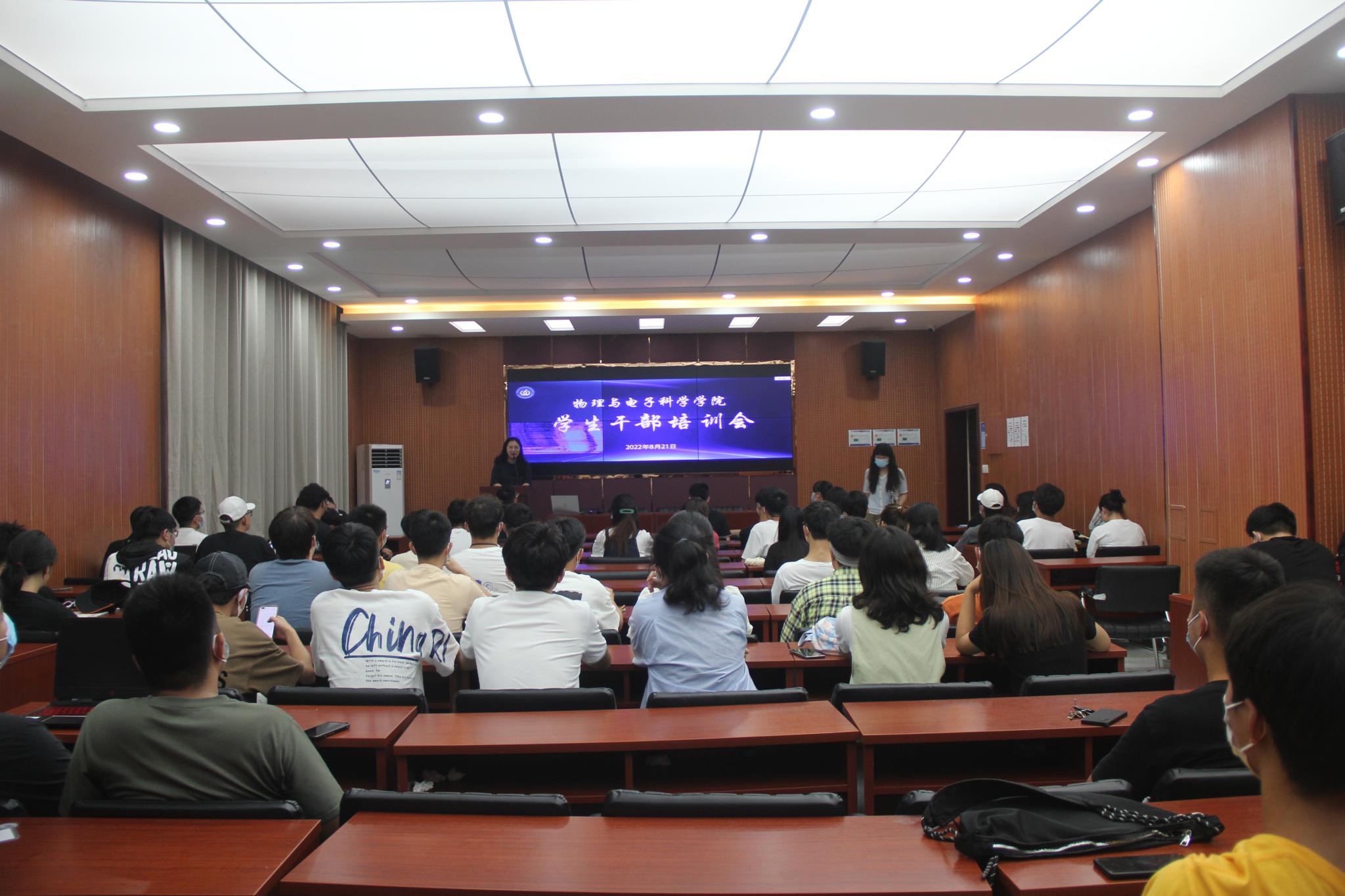为进一步强化学生干部队伍建设,提高学生干部的综合素质,更好的推进学生工作的健康稳定发展。8月21日上午,物理与电子科学学院于文澜楼F347召开学生干部培训会。学院团委书记周勇、全体辅导员出席本次会议,学院学生会干部及各班班长、团支书参加本次大会。本次会议由18级辅导员方芳主持。