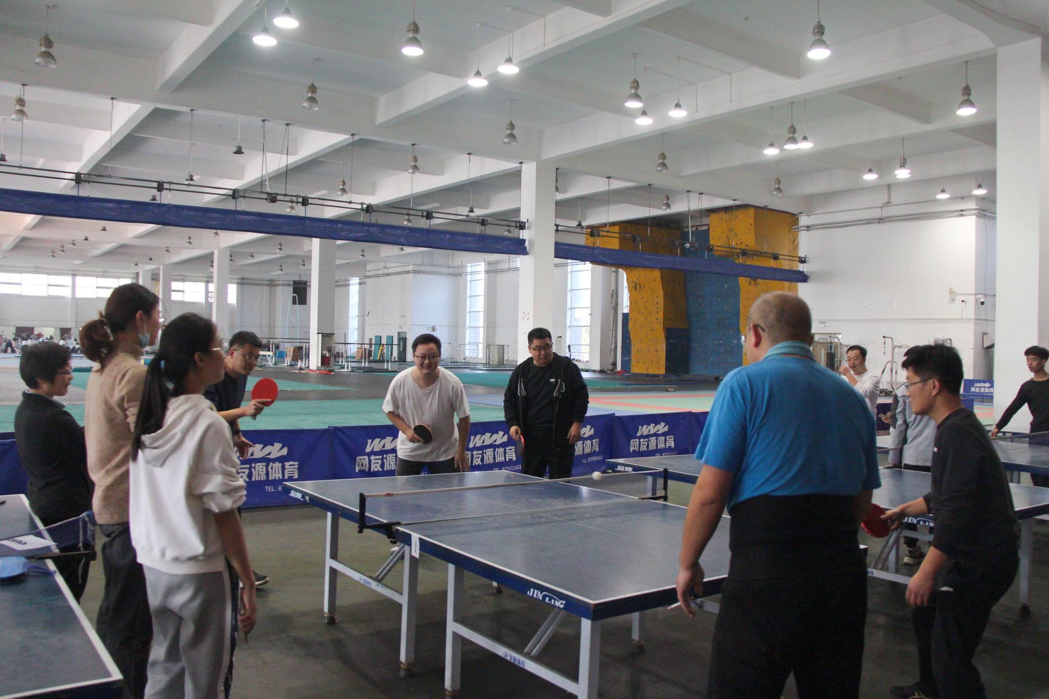 为更好放松教师身心,营造趣味运动氛围,11月17日中午,物理与电子科学学院于长清湖校区体育馆一楼及文澜楼教工之家F123室举办教师乒乓球团体赛。本次比赛分为A、B两组,共有八支队伍48名教师参赛。