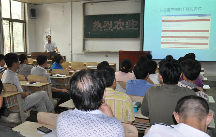 信息技术处徐长棣老师就新的客户端下载与认证、信息门户的登录与使用、办公系统与公文处理、通信平台与员工自助等为大家作了讲解与示范,对大家如何快捷、正确地使用校园网络给予了规范专业的指导,受到与会老师的热烈欢迎。
