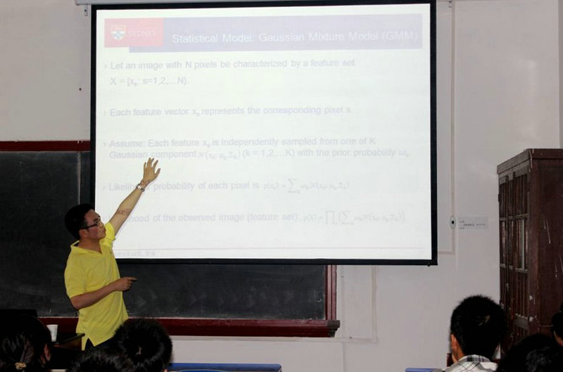 应物理与电子科学学院邀请,澳大利亚悉尼大学夏勇博士于9月16日来我校进行学术交流和访问,并做了题为“医学影像分析与挖掘”的学术报告。报告会由医学物理工程技术研究中心主任李登旺博士主持。物电学院的相关老师和研究生50多人参加了这次报告会,并与夏博士进行了交流。