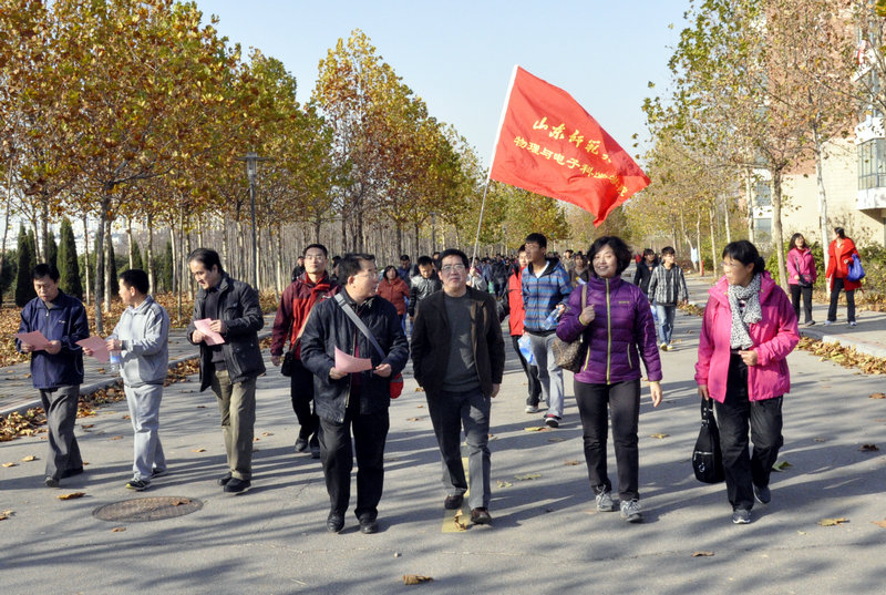 为深入开展党的群众路线教育实践活动,11月17日下午,物理与电子科学学院在长清校区举行师生联谊活动。活动包括攀登双龙山、球类项目、棋牌项目、现场书绘等丰富内容,学院60余名教师及辅导员与200余名学生党员、学生共同参与了此次活动,气氛十分融洽。