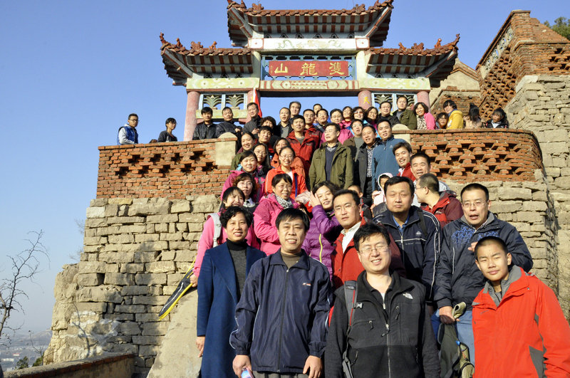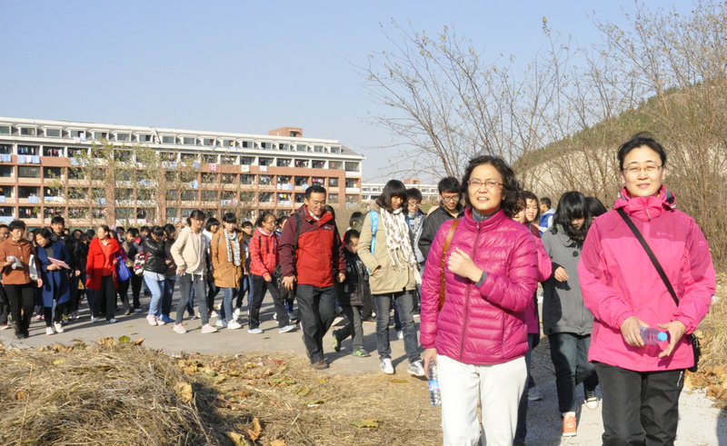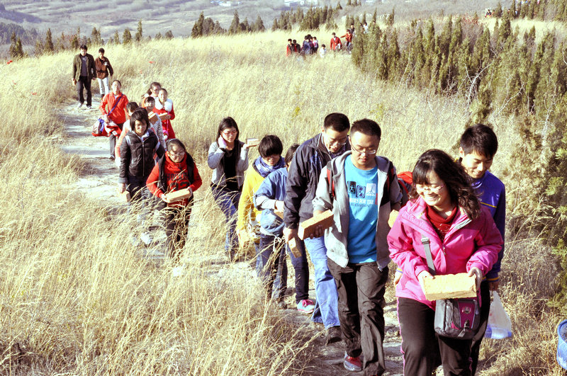 本次活动以“践行党的群众路线”为主题,旨在通过师生联谊的形式促进师生间的交流,进一步贯彻落实党的群众路线教育实践活动。活动伊始,学院党委书记胡桂香现场组织老师们排练《喀秋莎》,为当晚的迎新晚会大合唱做准备。随后,学生党员们高举学院旗帜在前方领路,老师和同学们紧随其后,踏上攀登双龙山的征程。在山口处,老师和同学们看到路边立着写有“义务搬砖”字样的标牌,都毫不犹豫地上前搬起几块砖,携砖前行。在路上,老师与同学们亲切地进行交流,大到专业发展、人生哲理,小到同学们的日常生活,大家侃侃而谈,气氛十分热烈。在登山过程中,同学间、师生间互相帮助的场面到处可见,同学们搀扶着年长的老师,缓步向上攀登。一路上师生们共同欣赏着美丽的景色,感受自然的魅力,欢声笑语回荡在美丽的山路之间。在成功登顶后,大家将砖块放在庙门口,共同进入山庙,瞻孔子庙,入观音堂,观三圣堂,赏恩泽亭……在这样的美景之下,老师与同学们纷纷合影留念,留下美好回忆。最后,大家结伴而归,相互搀扶,心满意足地踏上下山的路。