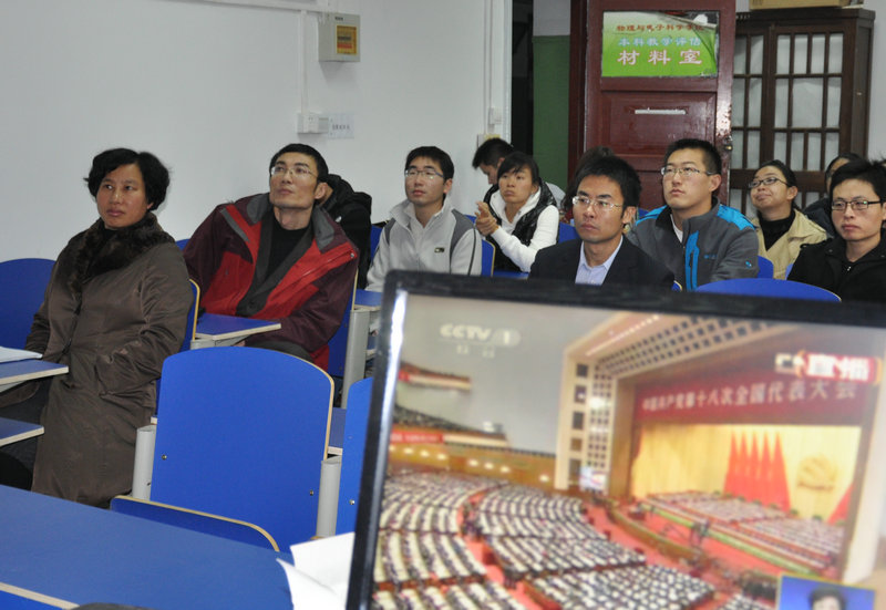 物电学院组织职工学生收看十八大开幕式盛况