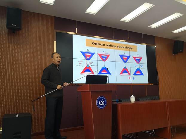 利用谷自由度进行信息的存储和操控是当前凝聚态物理领域新的研究方向之一。二维TMDs材料中的谷劈裂及谷极化是当前谷电子学的研究热点。屈凡尧教授详细介绍了二维材料的研究进展,重点阐述了TMDs材料WS2中的谷动力学,对其内多种不同的激子态特性进行了研究,并讨论了其作为谷比特的可行性。屈凡尧教授在报告会后和与会教师、研究生本科生进行了热烈的讨论交流,受到与会师生的欢迎。