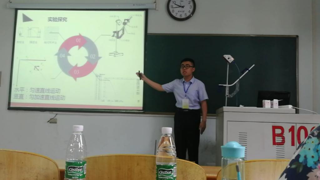 比赛过程中,选手们全面展示了学院良好的精神风貌与扎实的教学素养,得到了评委们的肯定。其中,物电学院学科教学(物理)研究生宋鑫玉,展示了《波的形成与传播》,以培养学生核心素养为指导,教学设计逻辑合理思路清晰,巧妙结合了翻转课堂、探究实验、多媒体演示、拟人化教学等多种新颖的教学模式,还利用小音箱、平面镜和激光笔自制了教具,向学生直观展示出声音在空气中的传播形式。环环相扣,娓娓道来,在传递知识的同时充分提现了学生的主体性,获得了评委老师和观众的一致好评。交流会最后,尤洪浩等六名同学被推荐在交流会上进行现场展示,其中宋鑫玉、杨珊珊等五名同学获得“教学技能标兵”称号,辛明浩、杨珊珊在教具展示环节被推选为“自制教具能手”称号。