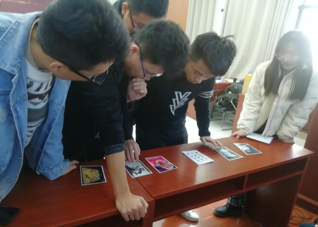 第二关中华小曲库之歌词大比拼,根据给定词语唱出歌词,台上群策群力歌声飘扬,台下猜题押题积极准备,现场热火朝天。第三关智力大比拼之猜猜我是谁,宿舍四位成员需在规定时间内完成卡片数字排序挑战,也是整场比拼中最难的游戏。从阿姆斯特朗第一个登月到歼15中国航母舰载机,从斯诺克22个球再到二进制27,图片包含信息种类丰富,对同学们的知识储备要求很高。台上众多参赛队伍绞尽脑汁一筹莫展,或拿起卡片上下左右旋转式看图,或果断排序验证循环往复。