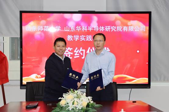 为了更好地搭建学生实践平台,实现科教融合,进一步提升研究生和本科生的实践能力,10月20日下午,物理与电子科学学院副院长赵曰峰、副院长宋玉志、电子系主任王晶晶、研究生辅导员杜军及教师万洪林、孙建辉前往山东华科半导体研究院有限公司进行实践教学共建基地签约。山东华科半导体研究院有限公司党支部书记、总经理、山东省半导体行业协会会长葛剑楠、常务副总经理鉴海防以及人力资源部部长吴少华等进行了接待。